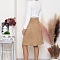 Юбка трапеция из искусственной замши на притачном поясе и застежкой в среднем шве спинки на пуговицу и потайную молнию.
