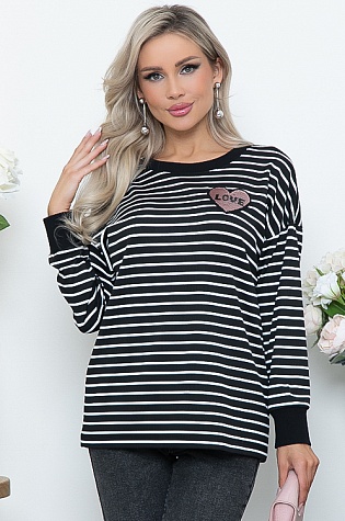 Джемпер из трикотажного полотна рибана в полоску(трикотаж лапша производство Турция) свободного силуэта.Горловина и манжеты отделаны хлопковой,трикотажной рибаной.По полочке декоративный элемент.