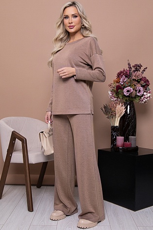 Брючный комплект из комфортного к телу, качественного трикотажного полотна мелкая лапша(ткань производство Турция).Джемпер свободного силуэта с разрезами по бокам.Брюки свободного силуэта расклешенные к низу,с высокой посадкой и эластичной резиной по поясу.По бокам функциональные карманы.Костюм идеально вариант для спорта,отдыха и прогулок.