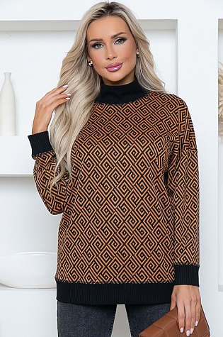 Джемпер свободного силуэта из жаккардового трикотажного полотна с отделкой трикотажной,вискозной рибаной.