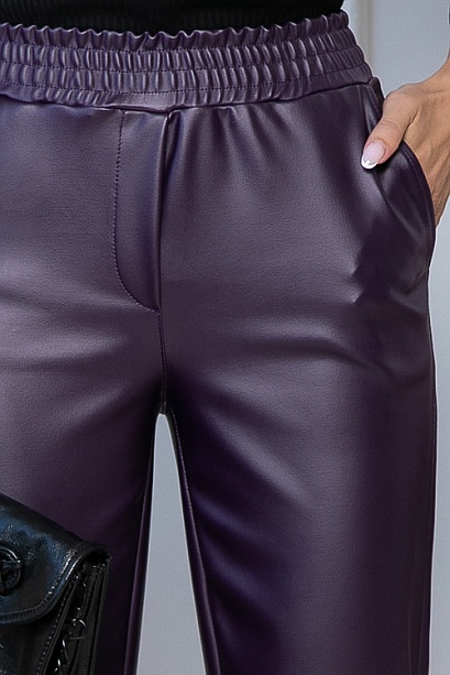 Комфортные брюки из экокожи,в боковых швах функциональные карманы,удобную посадку по талии обеспечивает эластичный пояс на резинке.