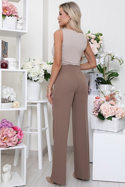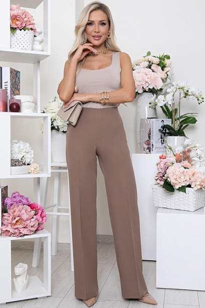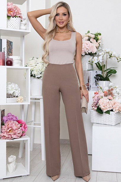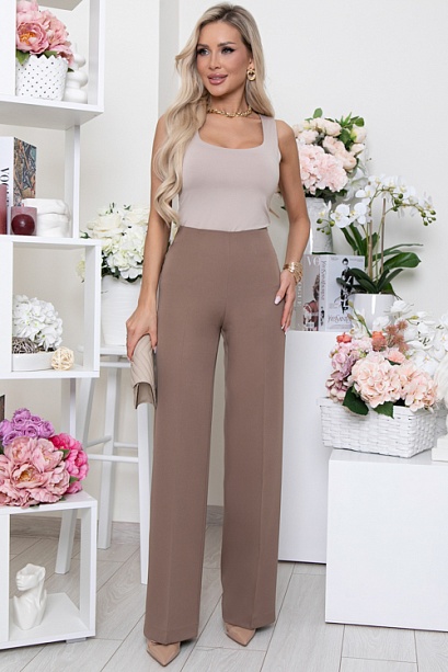- Брюки из костюмной ткани прямого расклешенного силуэта с застроченными стрелками.Талия на подкройной обтачке внутри,в боковом шве застежка молния.