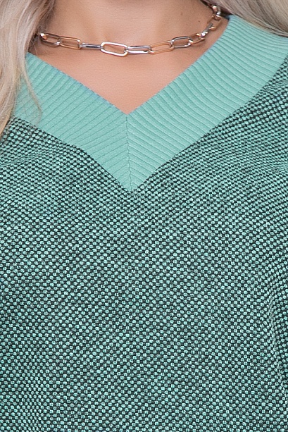 Комплект из джемпера и юбки из трикотажного полотна.Джемпер свободного силуэта со спущенным плечом и контрастной отделкой трикотажной рибаной.Юбка карандаш с разрезом в среднем шве спинки и эластичной резиной по поясу.