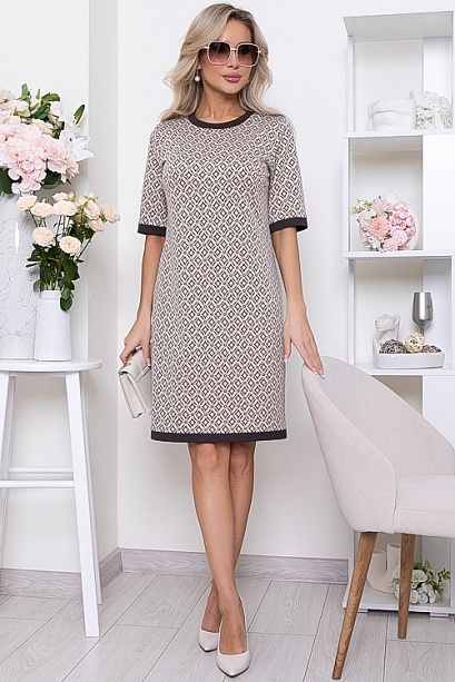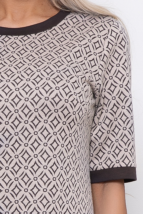 • Платье из жаккардового трикотажного полотна свободного силуэта с контрастной отделкой.