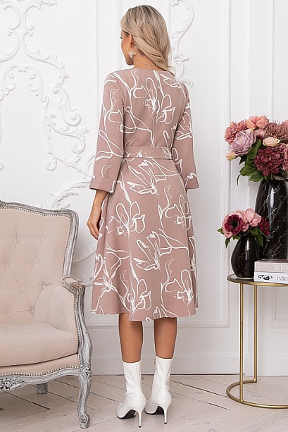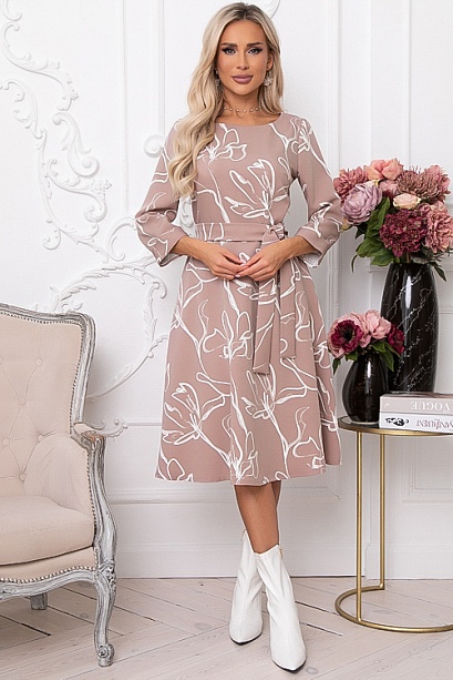 - Платье из костюмной ткани, отрезное по лини талии, с расклешенной юбкой, по спинке застежка молния. В комплекте пояс из основной ткани.