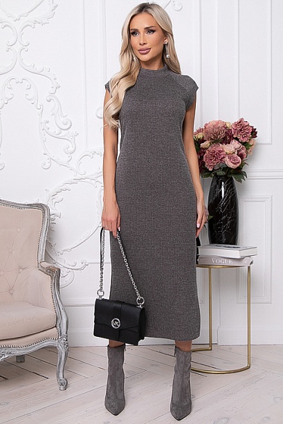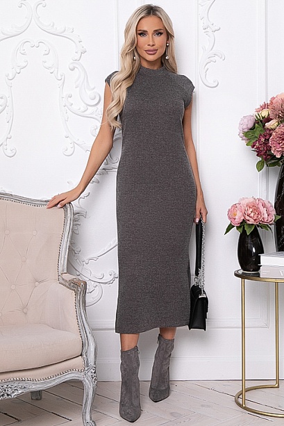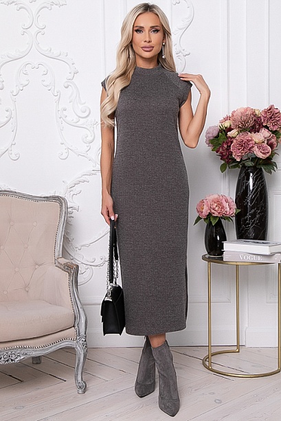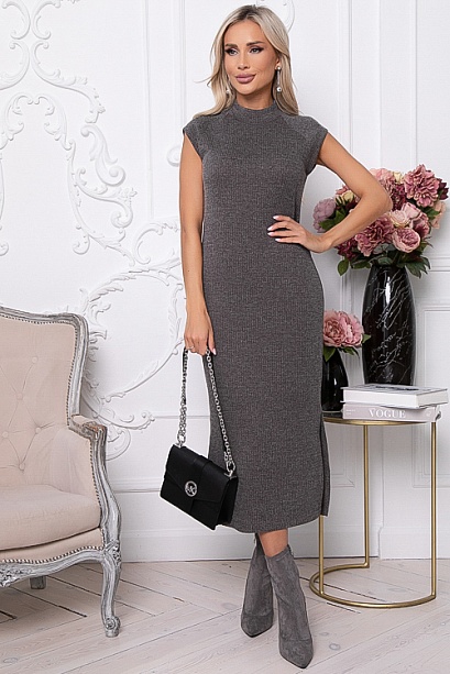 - Платье из трикотажного полотна длиной миди с разрезами по бокам.