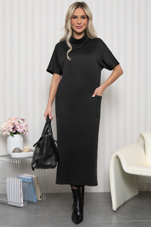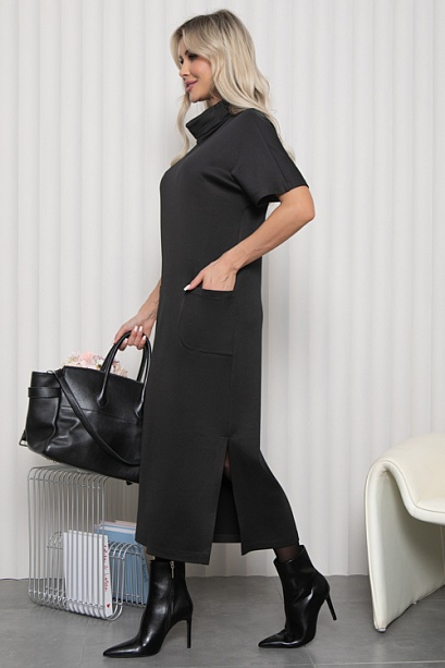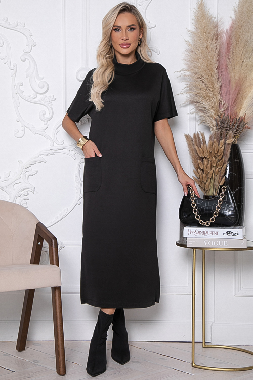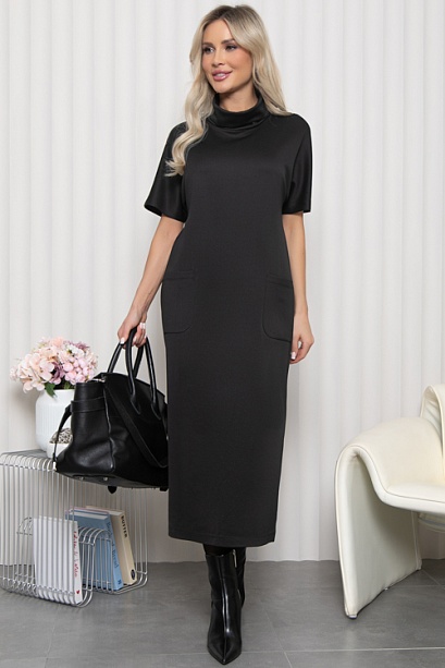 - Платье длиной миди из комфортного трикотажного полотна(ткань производство Турция) прямого силуэта с цельнокроеными рукавами, воротником-хомут и удобными накладными карманами. В боковых швах по низу обработаны разрезы.