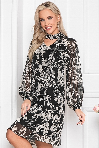 Платье из шифона А-образного силуэта на трикотажном подкладе.