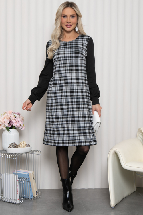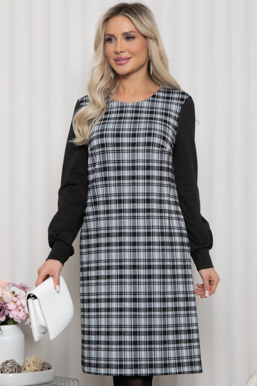 - Комбинированное платье из трикотажного полотна в клетку и трикотажа джерси.