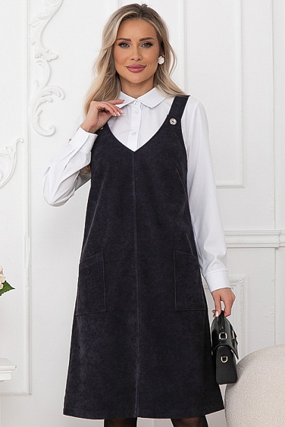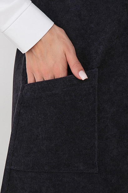 - Сарафан трапецевидного силуэта из вельвета с функциональными накладными карманами по переду. Цвет: т.синий.