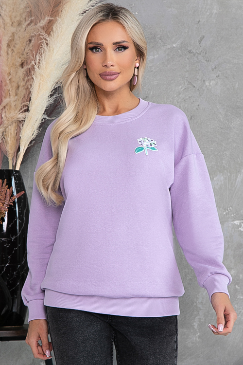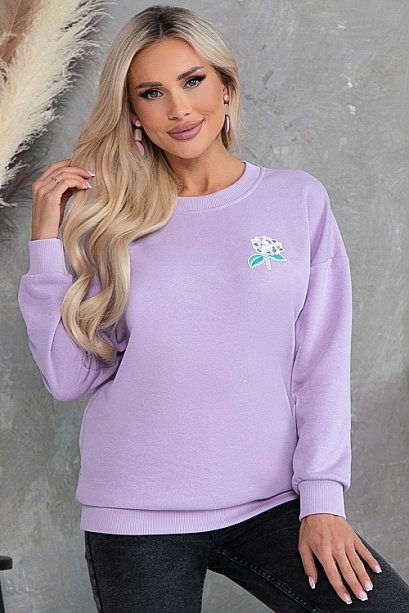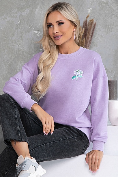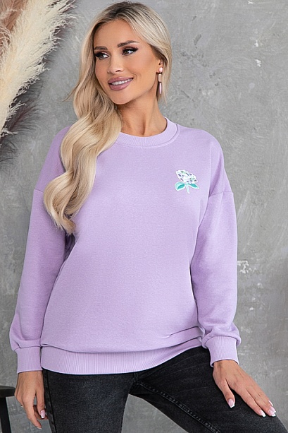 Свитшот свободного силуэта из хлопкового трикотажного полотна футер трехнитка(ткань производство Турция) с отделкой трикотажной рибаной и декоративным элементом.