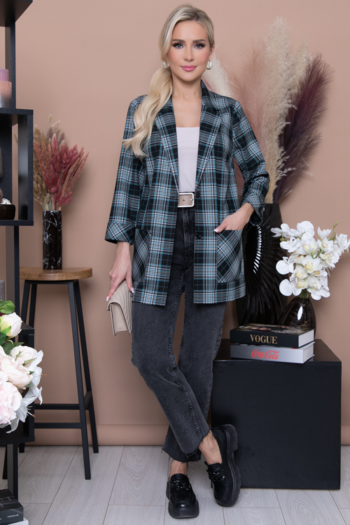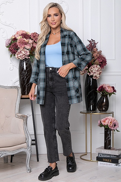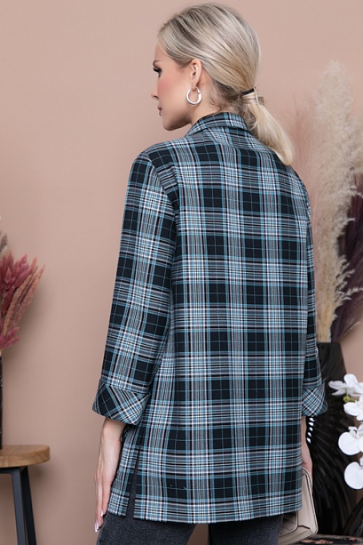 - Жакет из комфортной,качественной костюмной ткани свободного силуэта,в боковых швах разрезы.Центральная застежка на две пуговицы.По переду удобные накладные карманы.