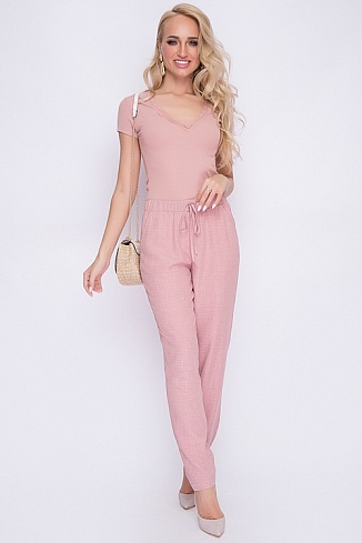 Легкие брюки свободного,прямого силуэта из комфортного текстильного полотна, удобную посадку по талии обеспечивает эластичный пояс на резинке с кулиской,В боковых швах функциональные карманы.