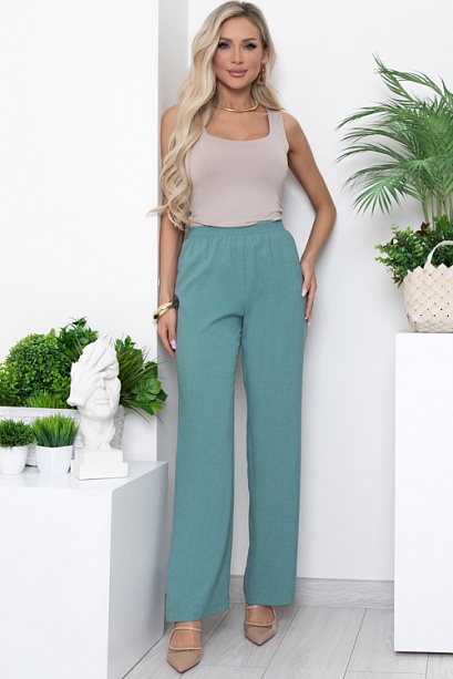 Брюки из легкой костюмной ткани прямого,свободного силуэта.Пояс на эластичной резине.