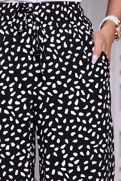 Легкие брюки свободного,прямого силуэта из комфортного текстильного полотна, удобную посадку по талии обеспечивает эластичный пояс на резинке с кулиской,В боковых швах функциональные карманы.