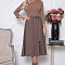 Рукав втачной..В боковых швах юбки обработаны карманы.По талии съемный завязывающийся пояс.