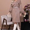 - Платье из трикотажного полотна под замшу.Лиф платья свободного силуэта,с цельнокроеными рукавами на манжете .Юбка прямая,слегка зауженная к низу,по спинке со шлицей.По талии платье зафиксировано на резину.Из верхней части платья формируется глубокий свободный напуск.Пояс из основной ткани в комплекте.