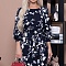 - Платье из текстильного полотна, отрезное по линии талии, присобрано на эластичную резину. Горловина оформлена отложным воротником на стойке. По полочке-планка до талии с застежкой на петли и пуговицы. Юбка изделия расклешенная и летящая. В комплекте длинный пояс из основной ткани.