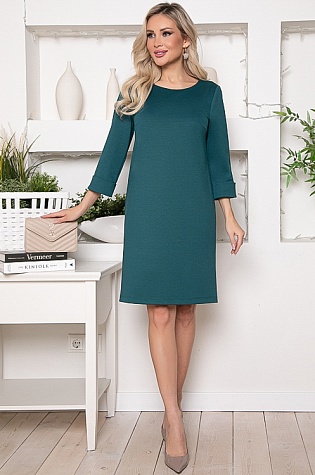 - Платье из костюмной ткани прямого, свободного силуэта. В среднем шве спинки шлица. Рукав втачной, по низу манжет частично собранный на резину.