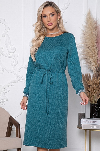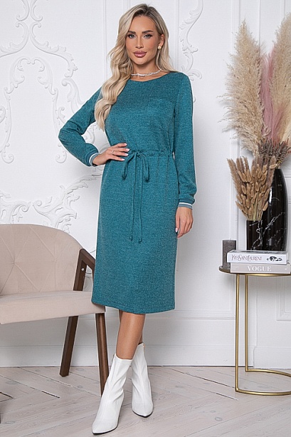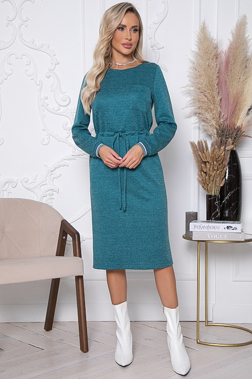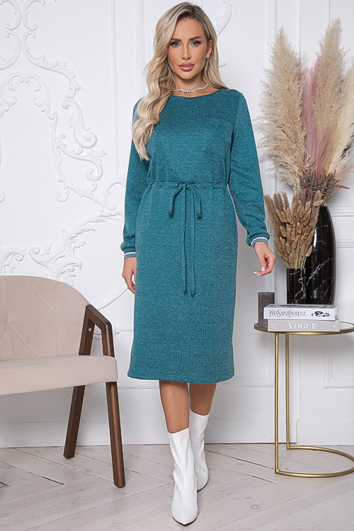 Платье из комфортного трикотажного полотна прямого,свободного силуэта с кулиской по талии.Рукав втачной оканчивающийся эластичными подвязами из трикотажной рибаны.В среднем шве спинки шлица.