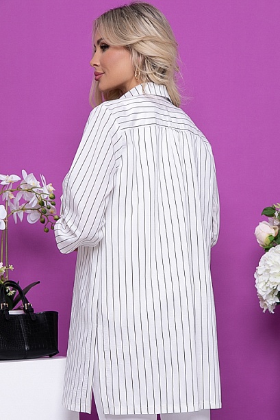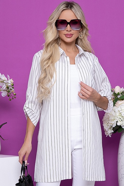 Рубашка из текстильного полотна свободного силуэта с центральной застежкой на пуговицы.Воротник отложной на стойке