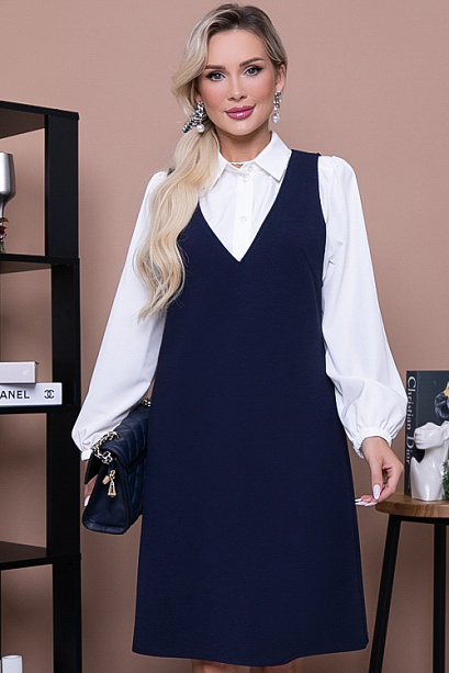 Сарафан А-образного силуэта из потного хорошо держащего форму трикотажного полотна.