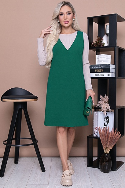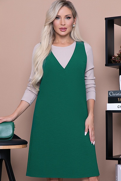 Сарафан А-образного силуэта из плотного хорошо держащего форму трикотажного полотна.
