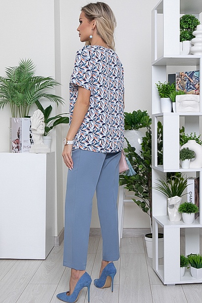 - Комплект состоящий из блузки и брюк.Блузка свободного силуэта из текстильного полотна.