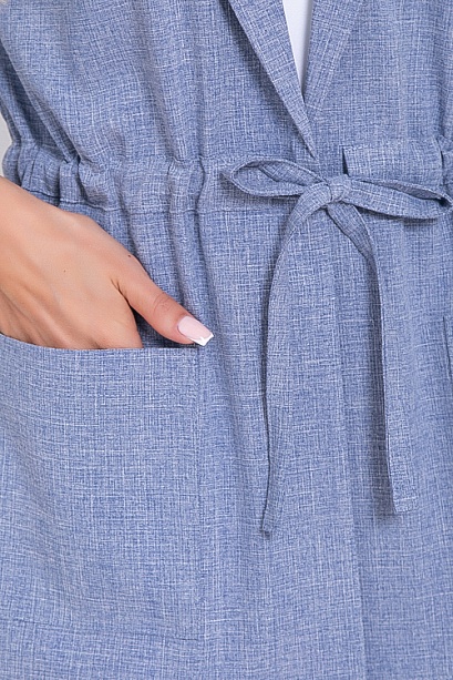 - Жакет из легкой костюмной ткани свободного силуэта. Воротник отложной с лацканами. По полочке функциональные накладные карманы.