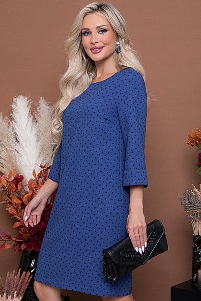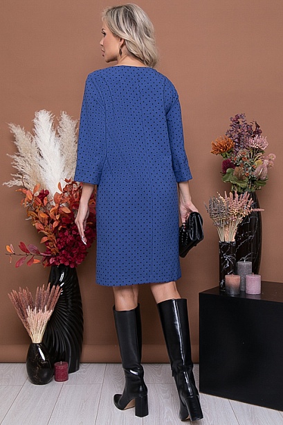 Платье из костюмной ткани в мелкий горошек свободного,прямого силуэта.