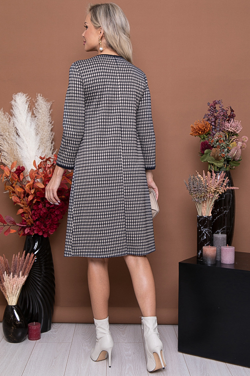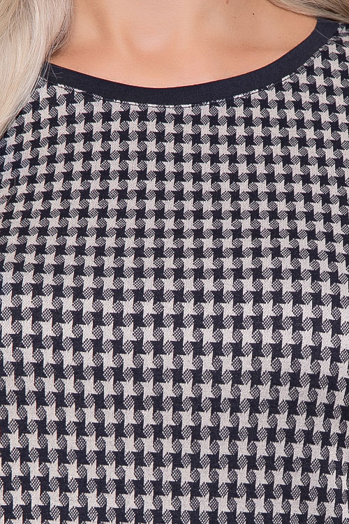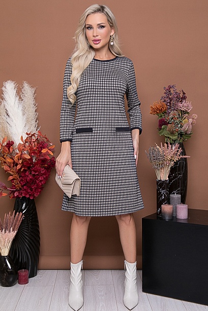 Платье А-образного силуэта из жаккардового полотна с контрастной отделкой.
