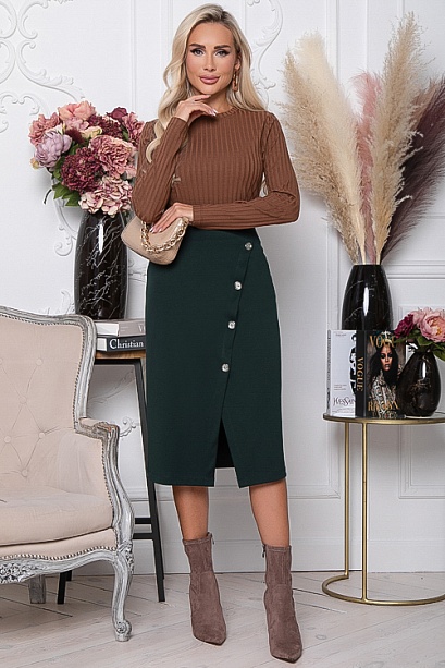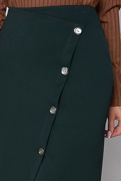 Юбка из трикотажного полотна джерси с имитацией запаха и декоративными пуговицами,в среднем шве спинки застежка молния.